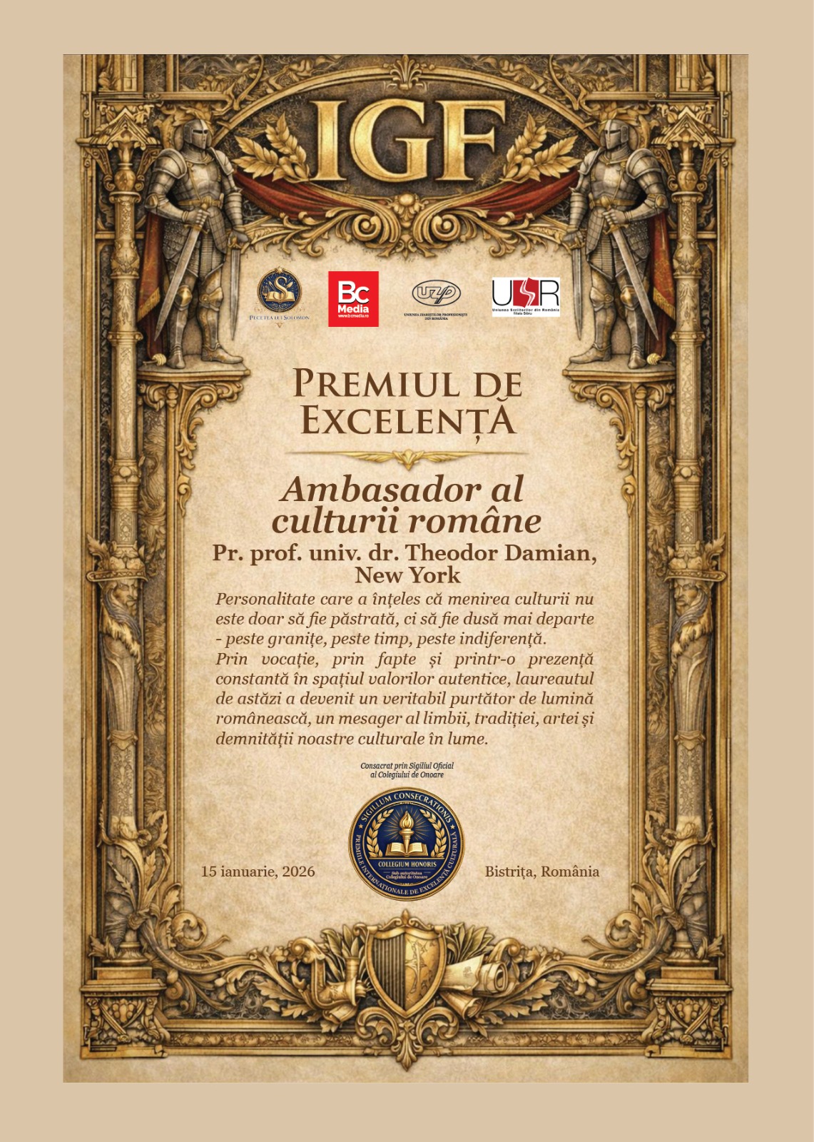 – Teacher PhD Dorel Cosma – I.G.F.’s President –